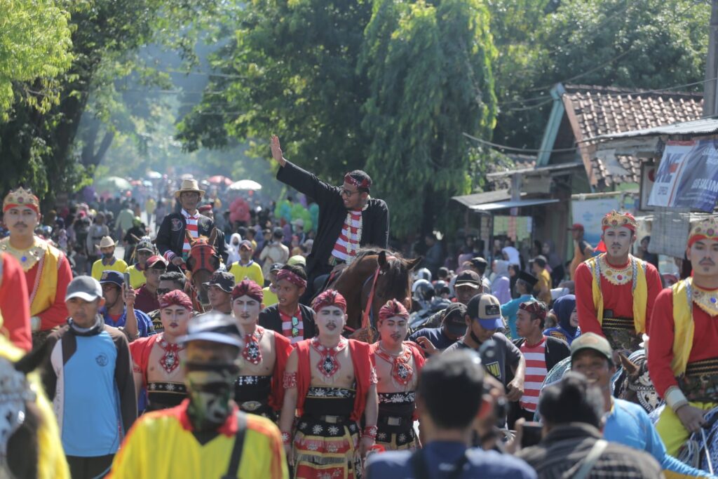 Bupati Sumenep Achmad Fauzi bersama pejabat pemerintah daerah menunggangi kuda di barisan depan arak-arakan. Ribuan orang berbaris di sepanjang rute, menyaksikan festival yang semarak itu.