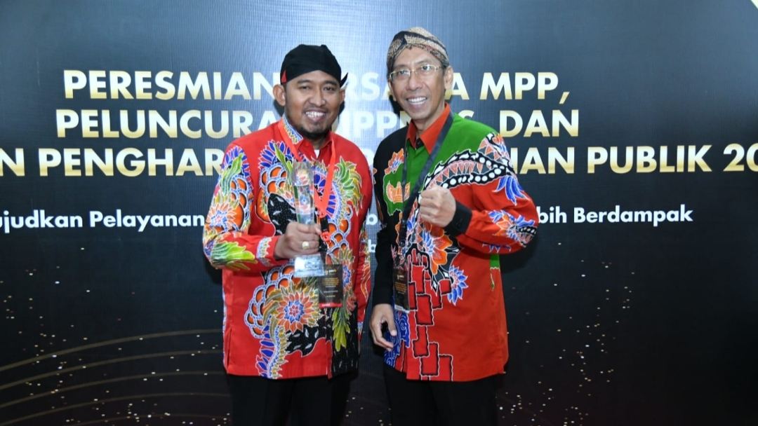 Penghargaan Top 45 Inovasi Pelayanan Publik Terpuji 2023 diberikan langsung oleh Menteri Pendayagunaan Aparatur Negara dan Reformasi Birokrasi Abdullah Azwar Anas, kepada Bupati Sumenep Achmad Fauzi Wongsojudo pada peresmian bersama MPP dan peluncuran JIPPNAS, di Jakarta, Selasa (21/11/2023).