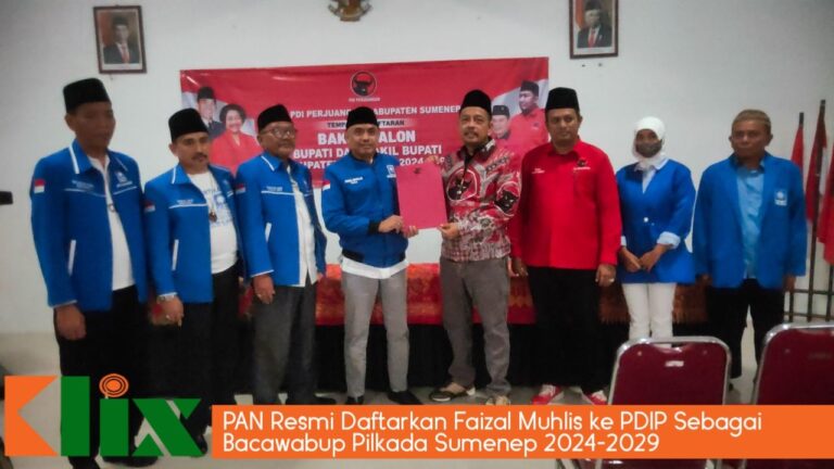 Sumenep, www.klix.co.id – Partai Amanat Nasional (PAN), mendatangi DPC Partai Demokrasi Indonesia Perjuangan (PDIP) , Kabupaten Sumenep, Jawa Timur. Secara resmi DPD PAN Sumenep, mendaftarkan Kader Terbaiknya Faizal Muhlis, sebagai Bacawabup pada Pilkada Sumenep 2024-2029. (25/04/2024).