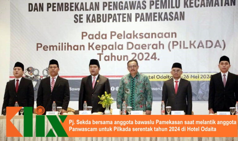 Pamekasan, klix.co.id – Badan Pengawas Pemilu (Bawaslu) Kabupaten Pamekasan, Madura, Jawa Timur, resmi melantik anggota Panitia Pengawas Pemilu Kecamatan (Panwascam) untuk Pemilihan Kepala Daerah (Pilkada) serentak tahun 2024 di Hotel Odaita, Jalan Raya Pamekasan-Sumenep, Sabtu (25/5/2024).