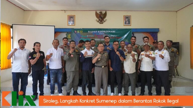 Sumenep, www.klix.co.id – Pemerintah Kabupaten Sumenep, Jawa Timur, mrlalui Satuan Polisi Pamong Praja (Satpol PP) setempat, menggelar rapat koordinasi dan bimbingan teknis (Bintek) terkait Sistem Pelaporan Rokok Ilegal (Siroleg) pada Rabu (8/10/2024) di Aula Kantor Satpol PP Sumenep. Acara ini dihadiri tim pengumpulan informasi rokok ilegal tahun 2024, yang telah dibentuk berdasarkan Surat Keputusan (SK) Bupati Sumenep.