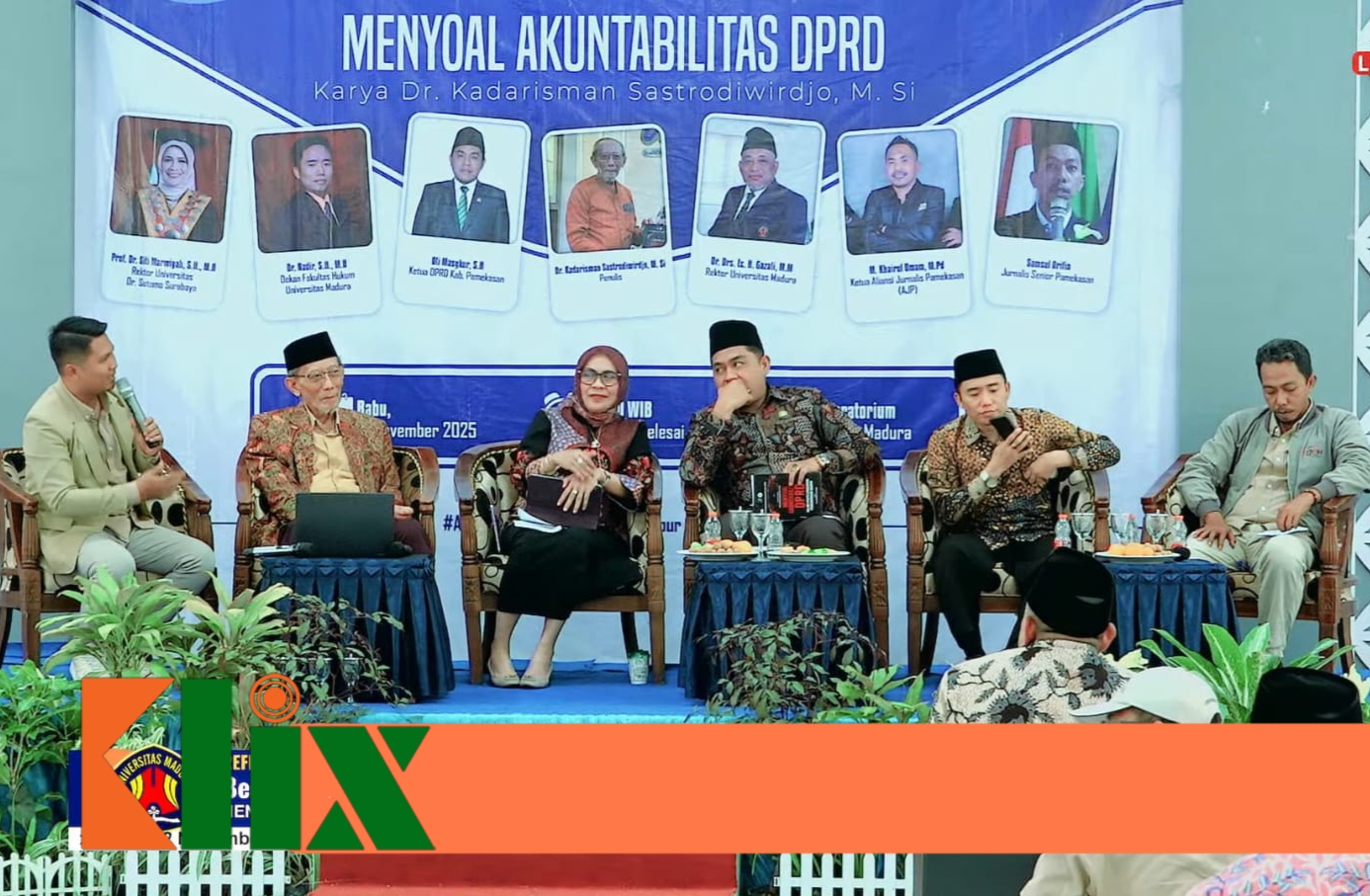 Acara ini sekaligus membedah buku karya Dr. Kadarisman Sastrodiwirdjo, M.Si., berjudul “Menyoal Akuntabilitas DPRD.” Penulis buku hadir langsung bersama enam tokoh yang turut menjadi pembedah, di antaranya Prof. Dr. Siti Marwiyah (Rektor Universitas Dr. Soetomo Surabaya), Dr. Nadir (Dekan Fakultas Hukum UNIRA), Ali Masykur (Ketua DPRD Pamekasan), Dr. Drs. Ec. H. Gazali (Rektor UNIRA), M. Khairul Umam (Ketua AJP), dan Samsul Arifin (jurnalis senior Pamekasan).